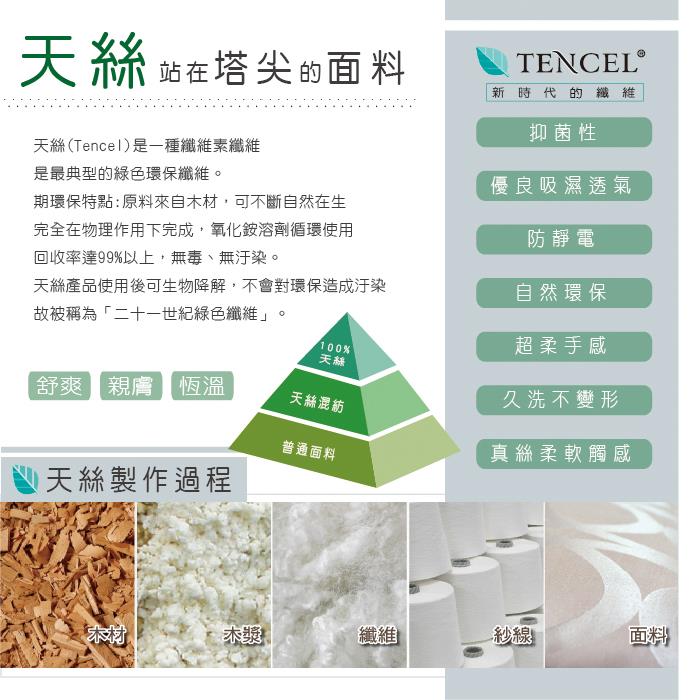 天絲是最天然衛生的纖維,排濕性佳透氣姓好,使用時乾爽舒適,不會有悶熱感。?